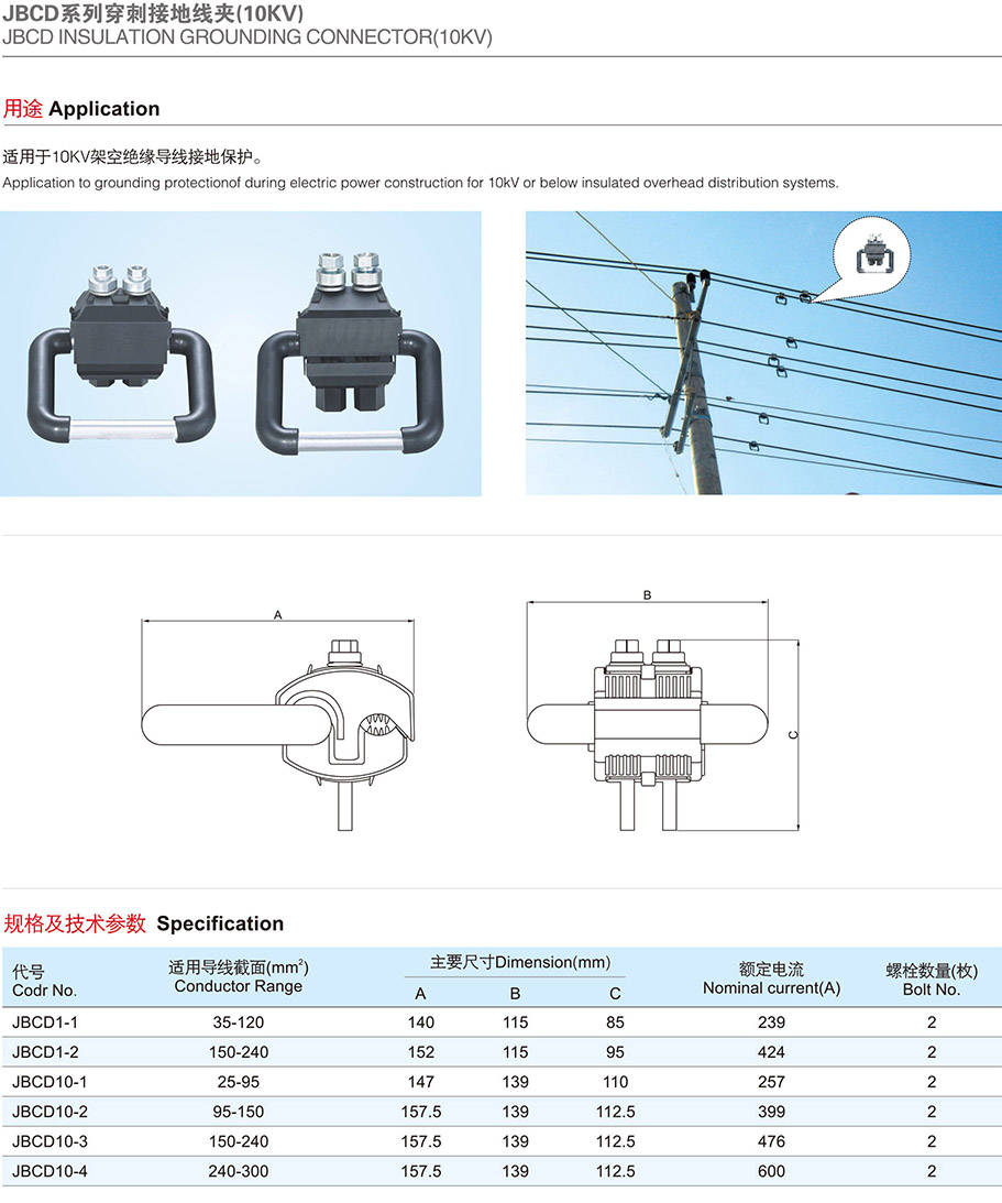 產品名稱:JBCD系列穿刺接地線夾(10KV)
