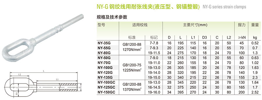 產品名稱:NY-G鋼絞線用耐張線夾(液壓型、鋼錨整段)