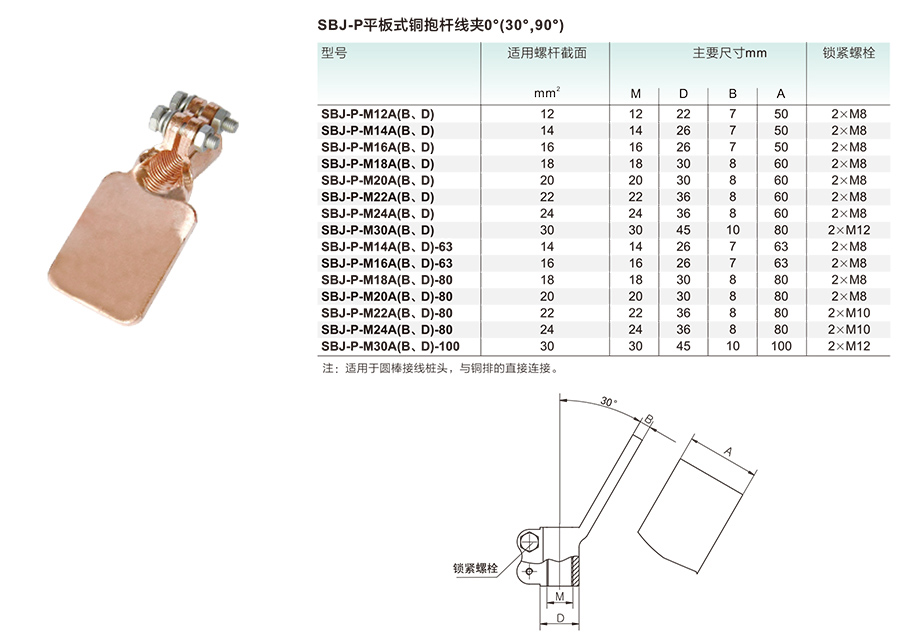 產品名稱:SBJ-P平板式銅抱桿線夾0°(30°,90°)