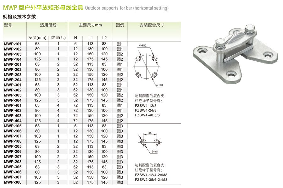 產(chǎn)品名稱:MWP型戶外平放矩形母線金具