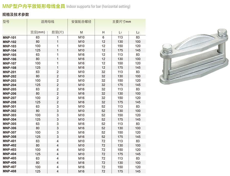 產(chǎn)品名稱:MNP型戶內(nèi)平放矩形母線金具