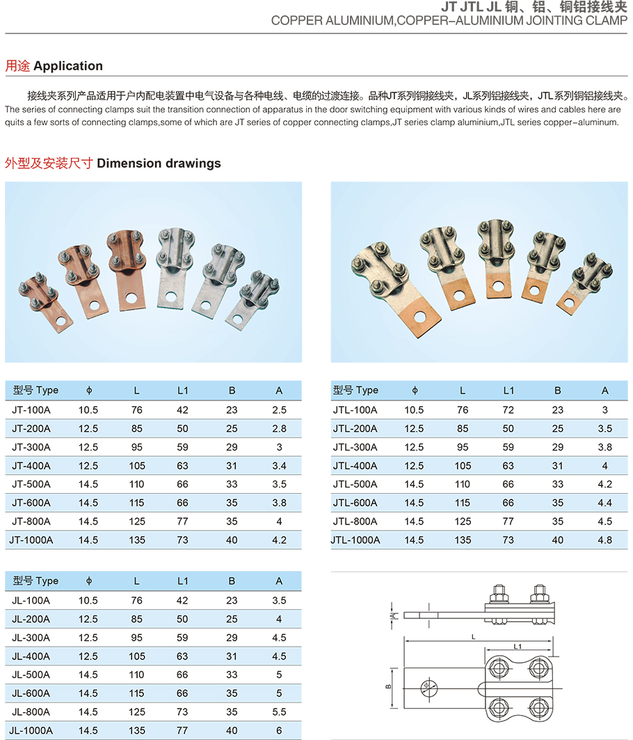 產品名稱:JT JTL JL 銅、鋁、銅鋁接線夾