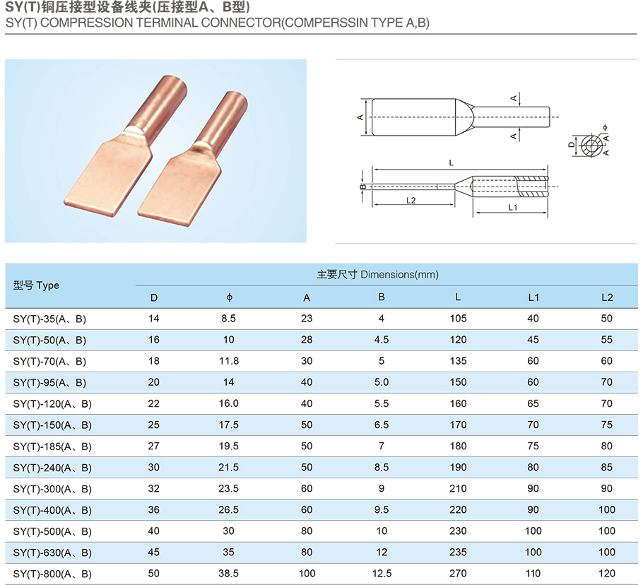產(chǎn)品名稱:SY(T)銅壓接型設(shè)備線夾(壓接型A、B型)