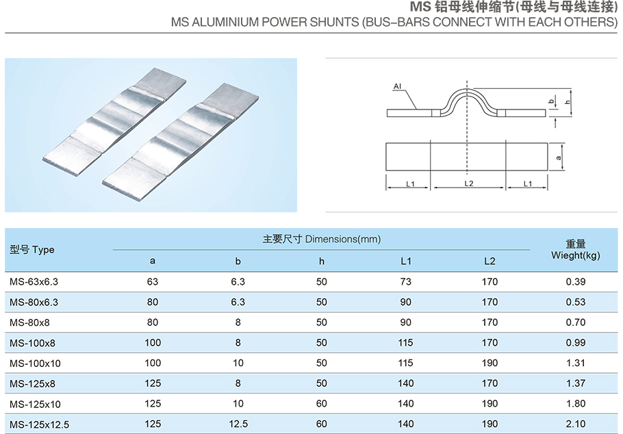 產品名稱:MS鋁母線伸縮節(母線與母線連接)