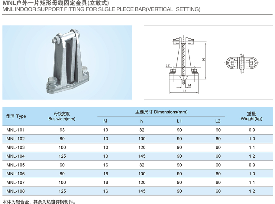 產品名稱:MNL戶外一片矩形母線固定金具(立放式)